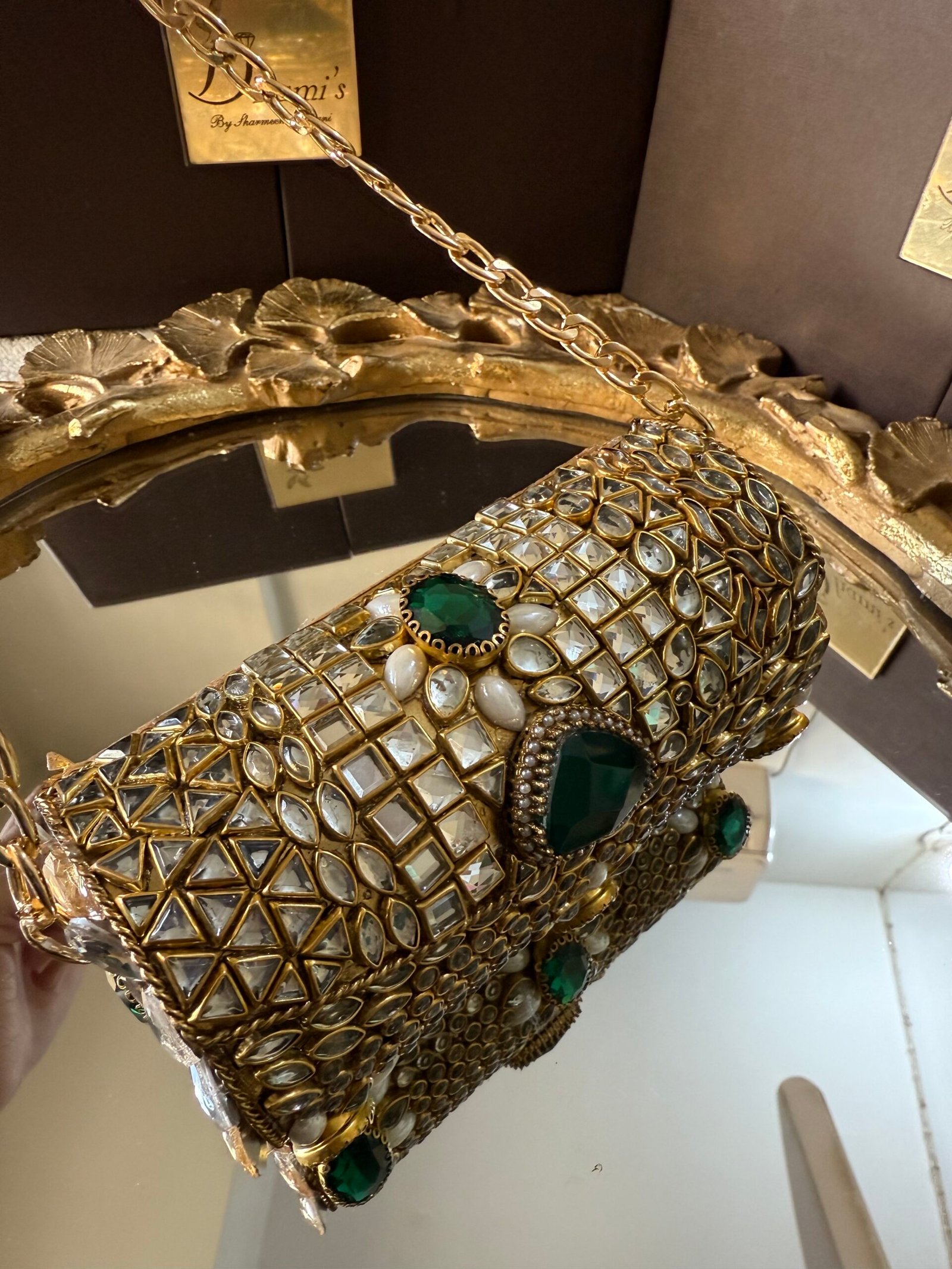 Designer hand made kundan work mini clutch