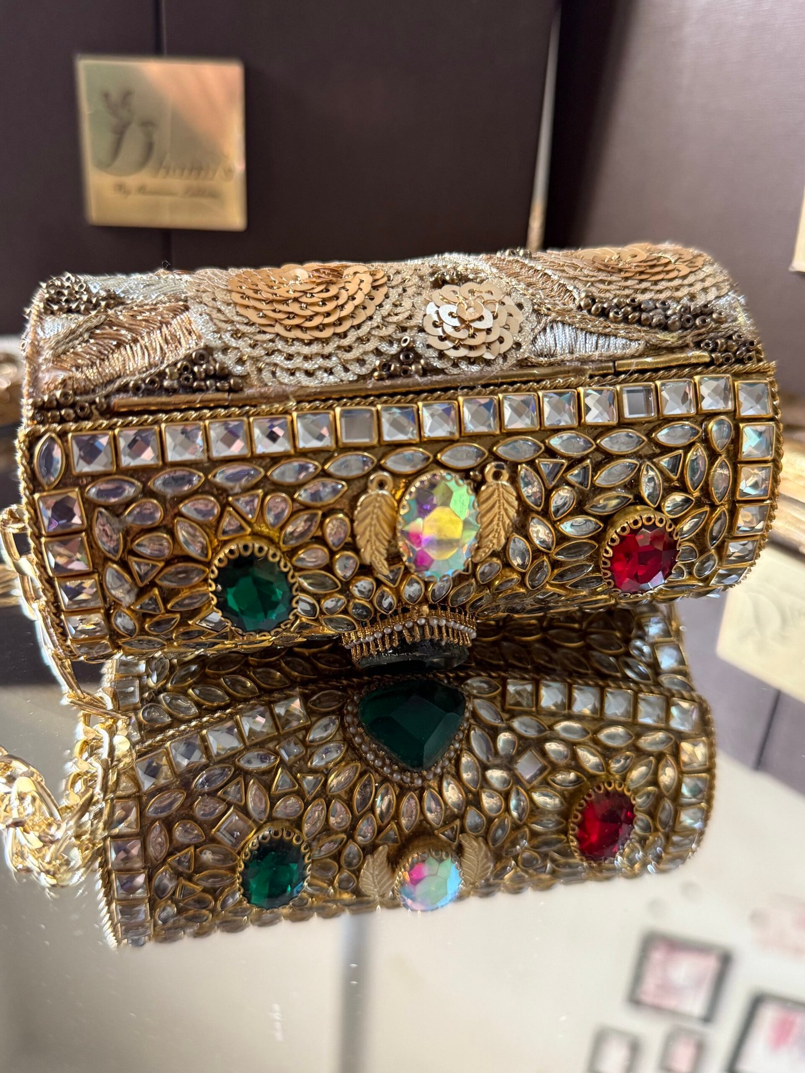 Designer hand made kundan mini clutch