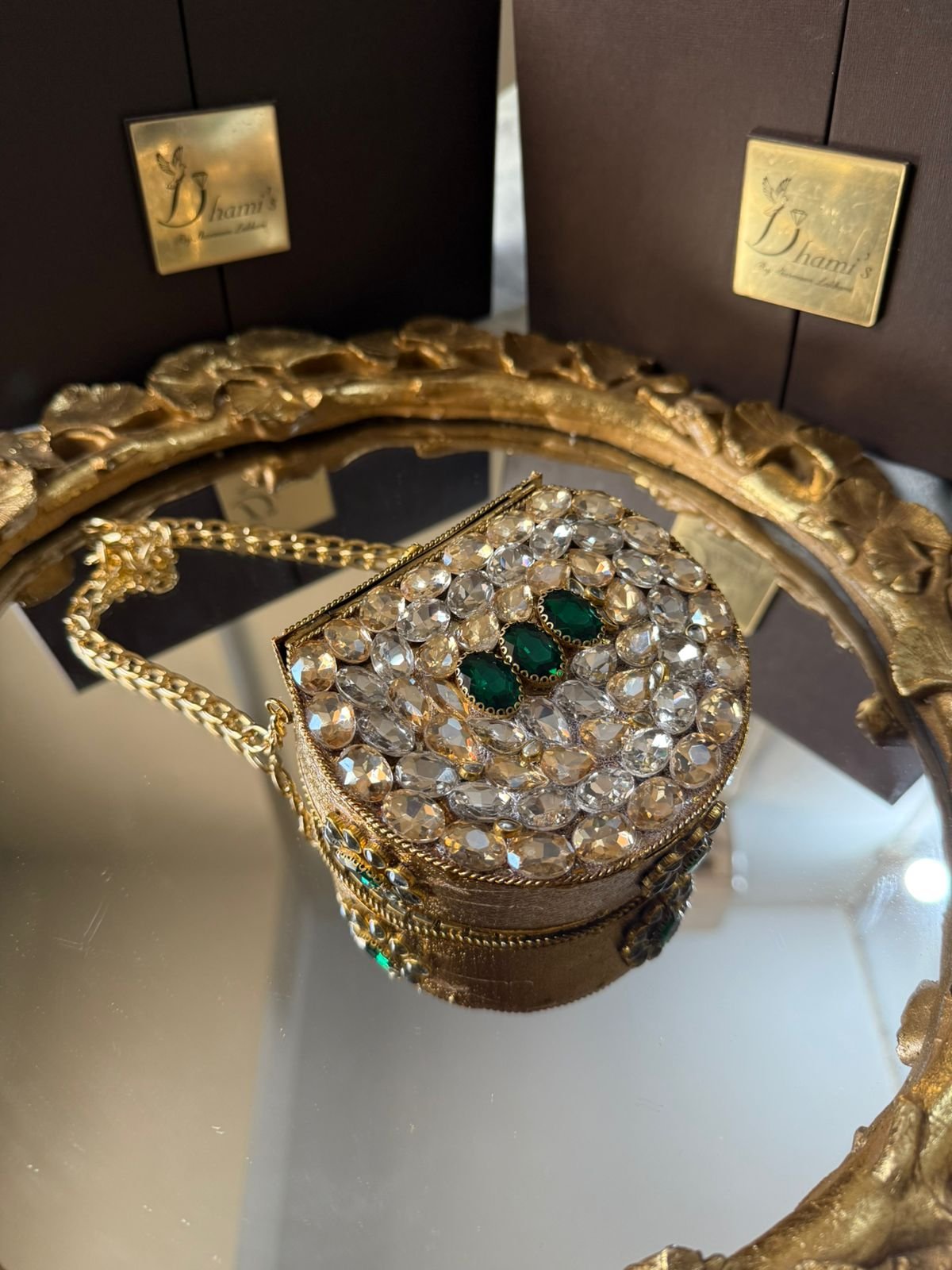 Designer hand made kundan with turkish work mini clutch