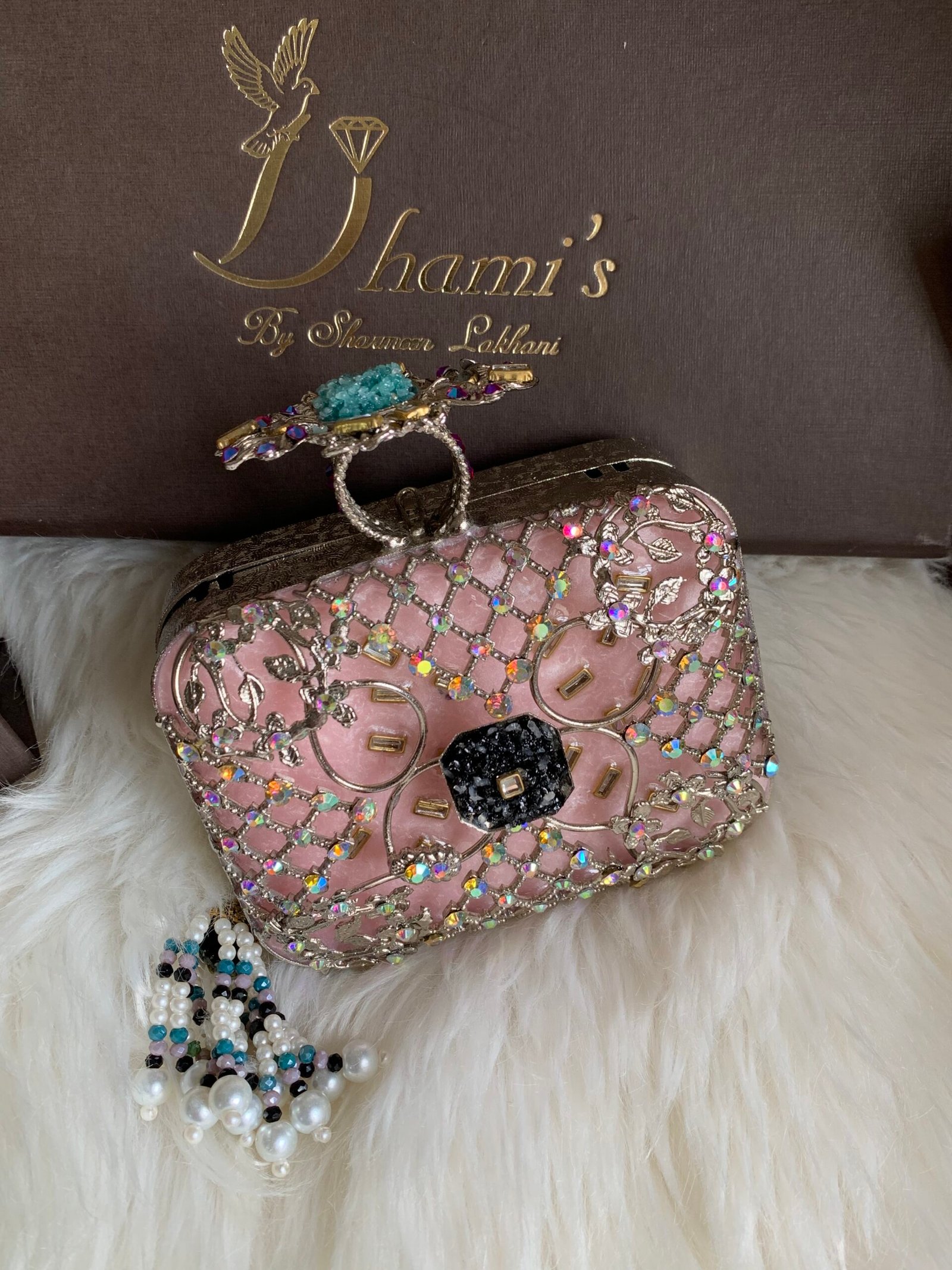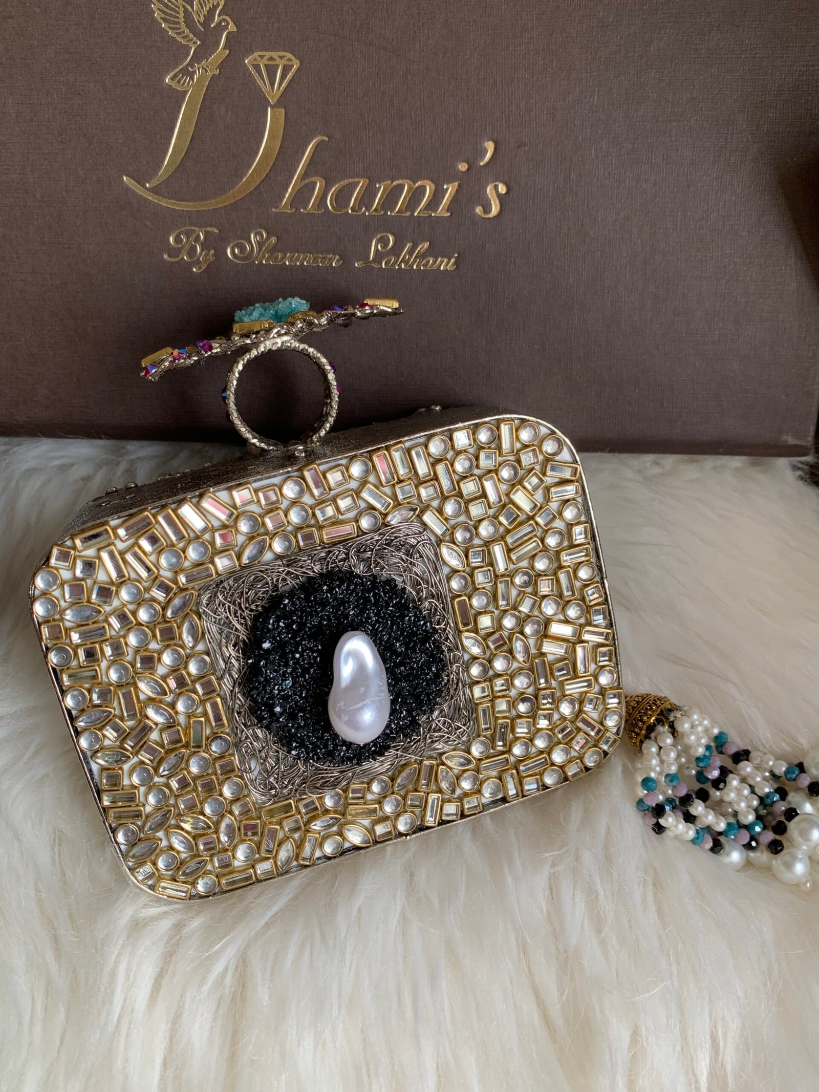 Designer hand made kundan with turkish work mini clutch