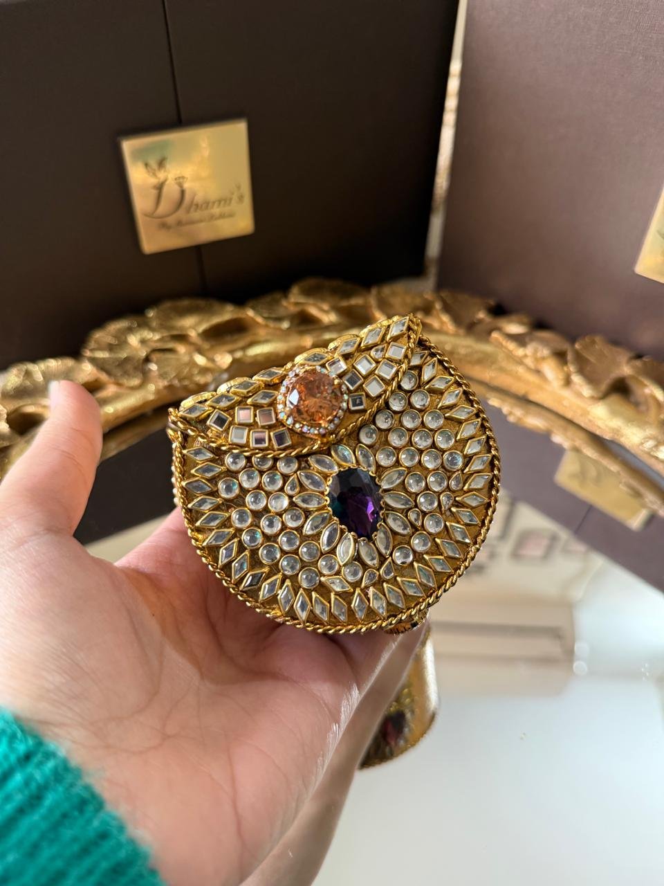 Designer hand made kundan mini clutch