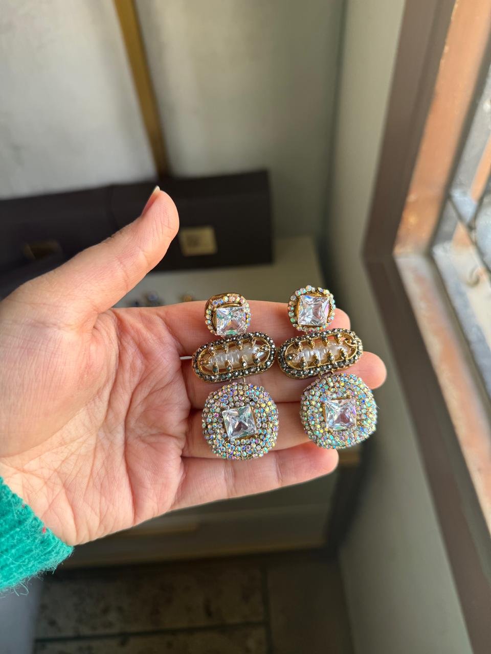 Designer hand made mother of pearl with turkish work Earing