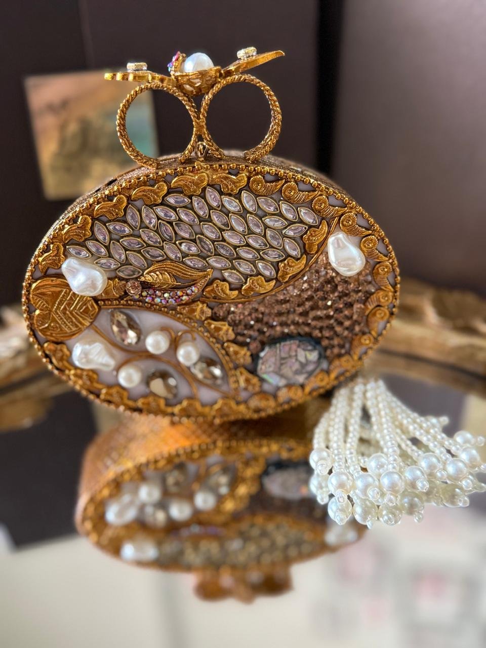 Designer hand made kundan with turkish work mini clutch …