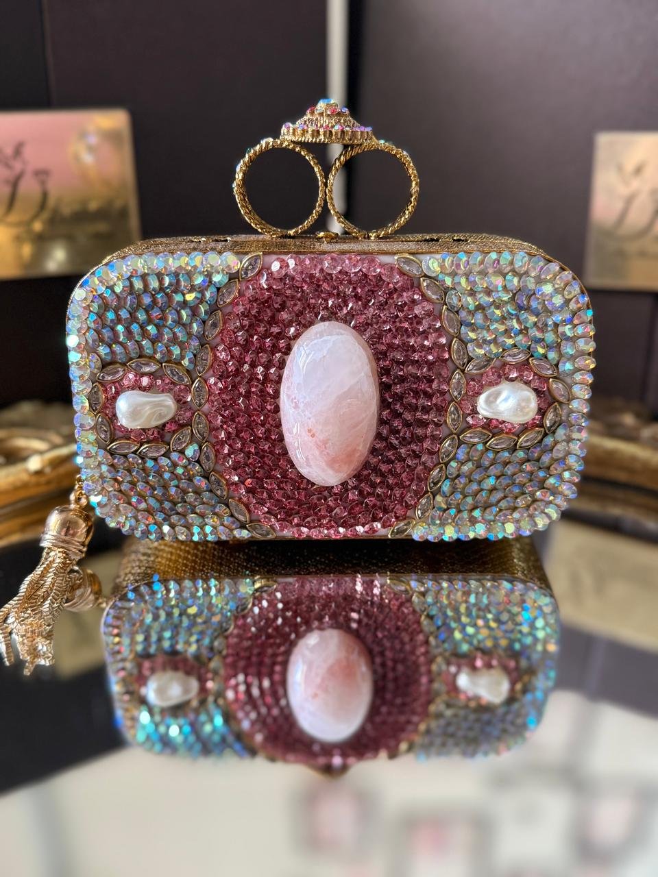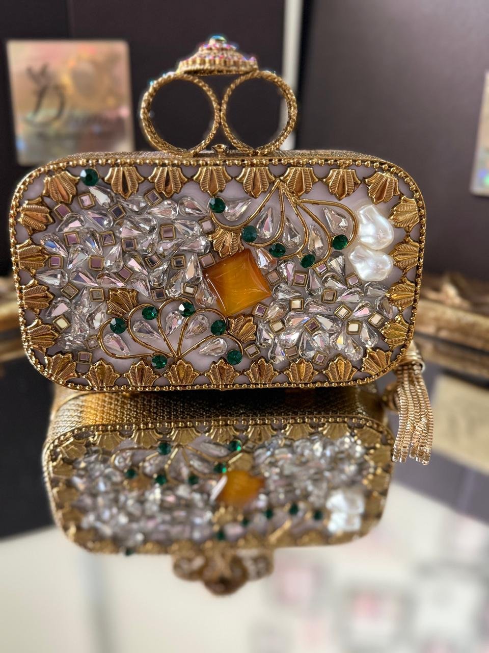 Designer hand made kundan with turkish work mini clutch ..