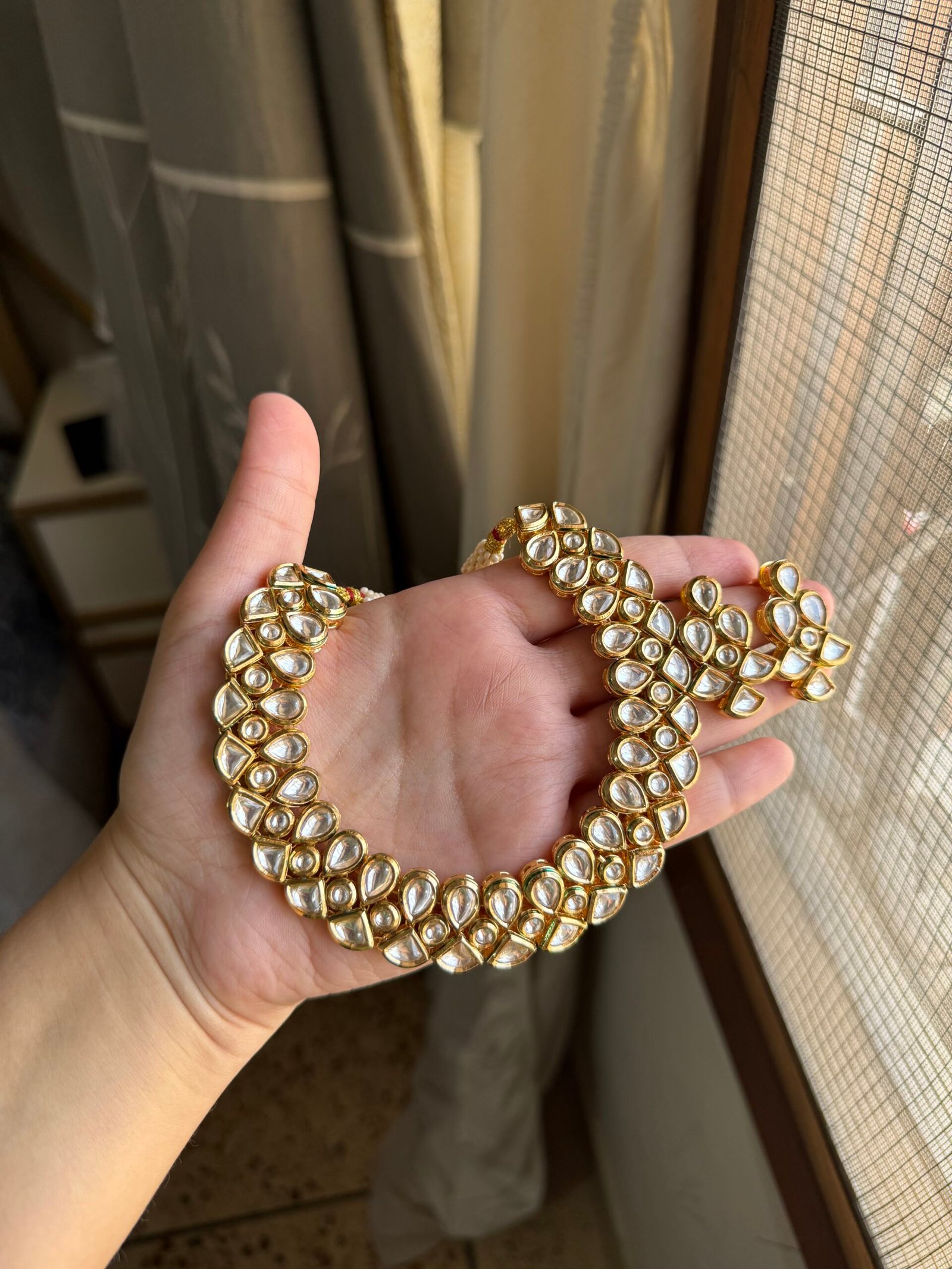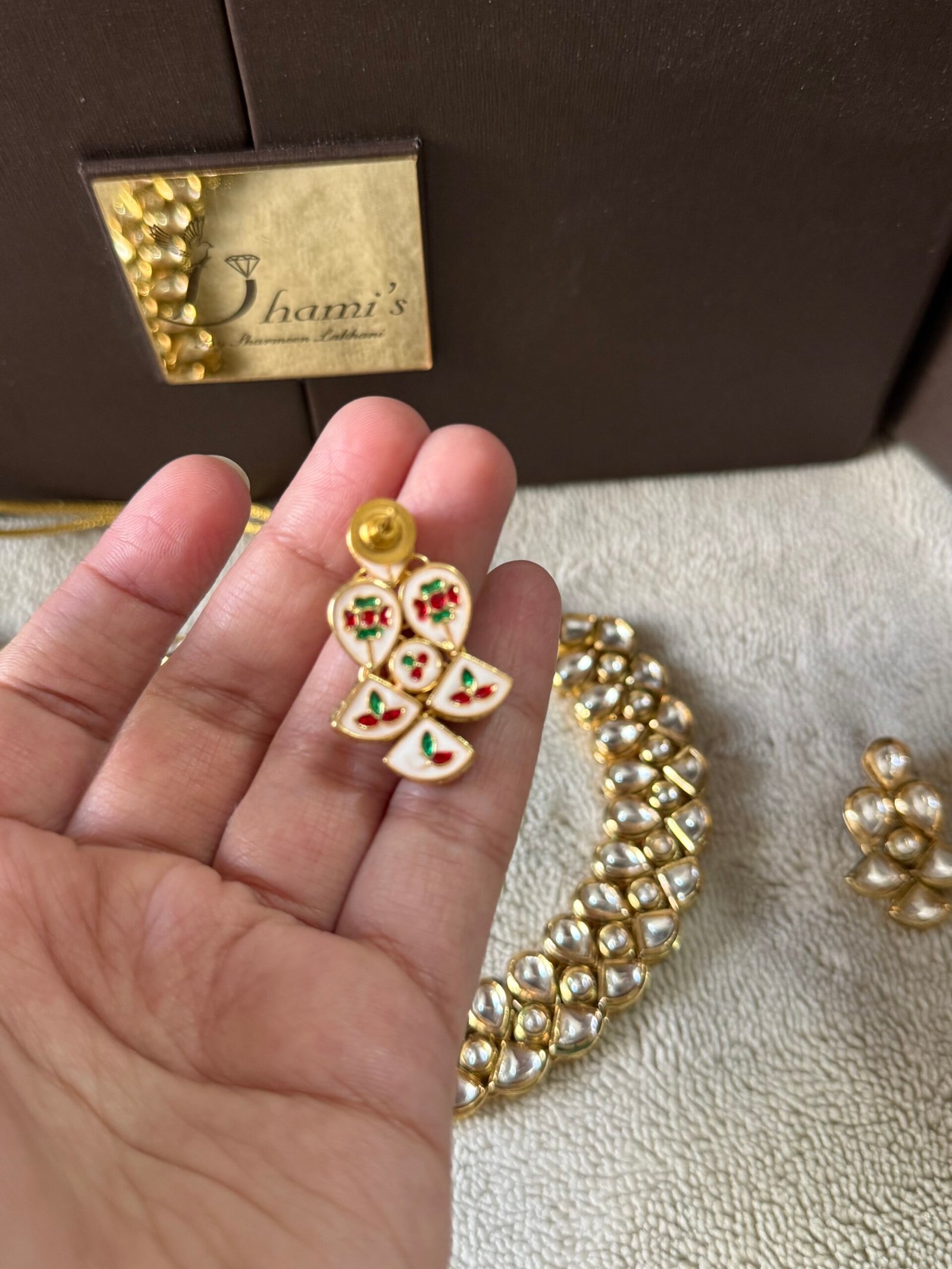 Designer premium quality kundan neckline sat with back meenakari work ..!