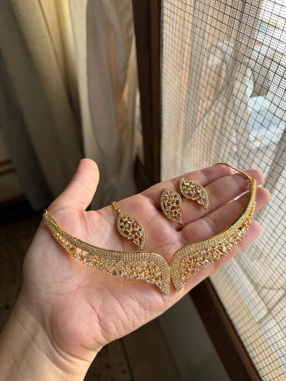 Designer indian Ad jadao collar set with teeka
