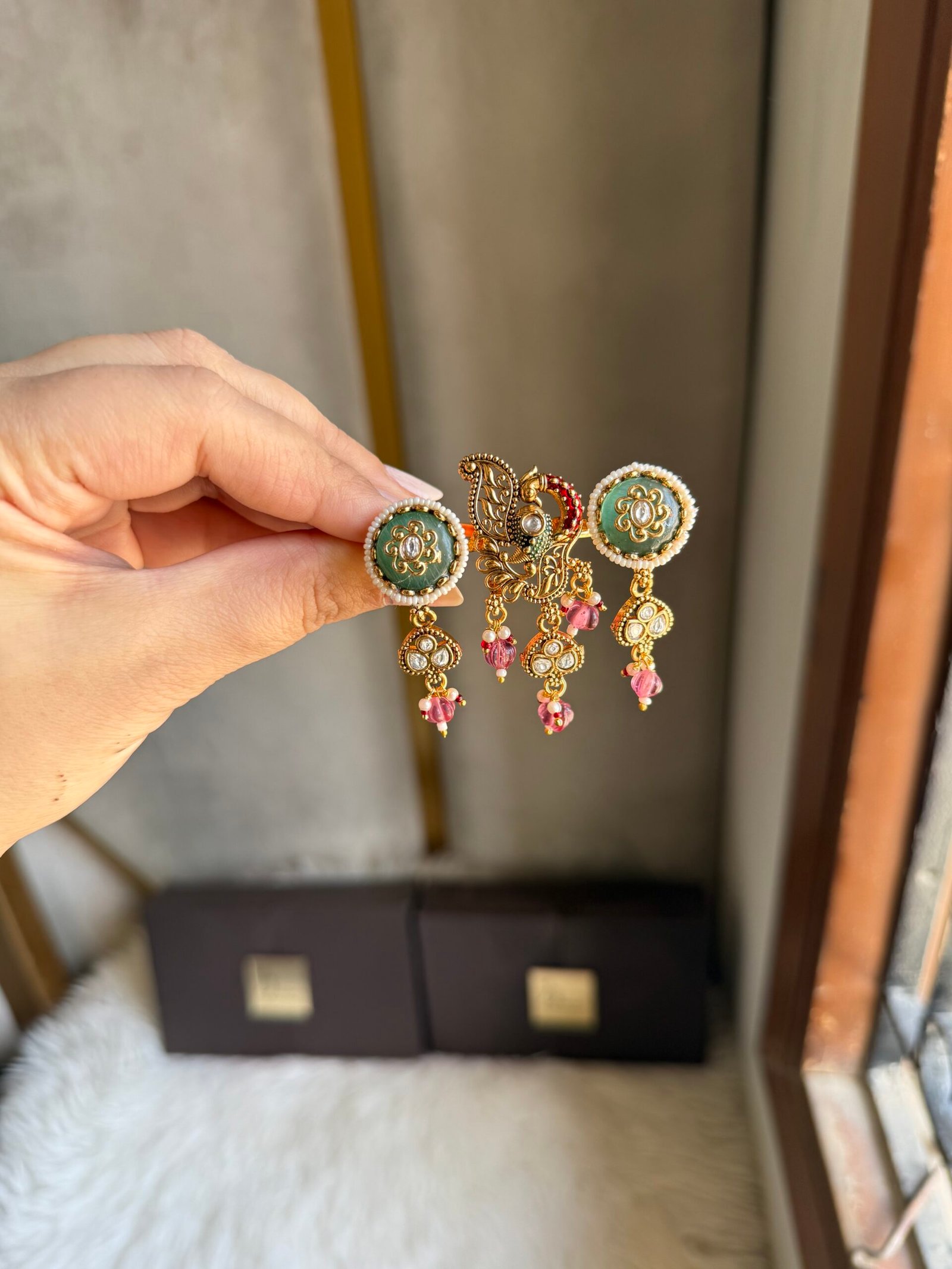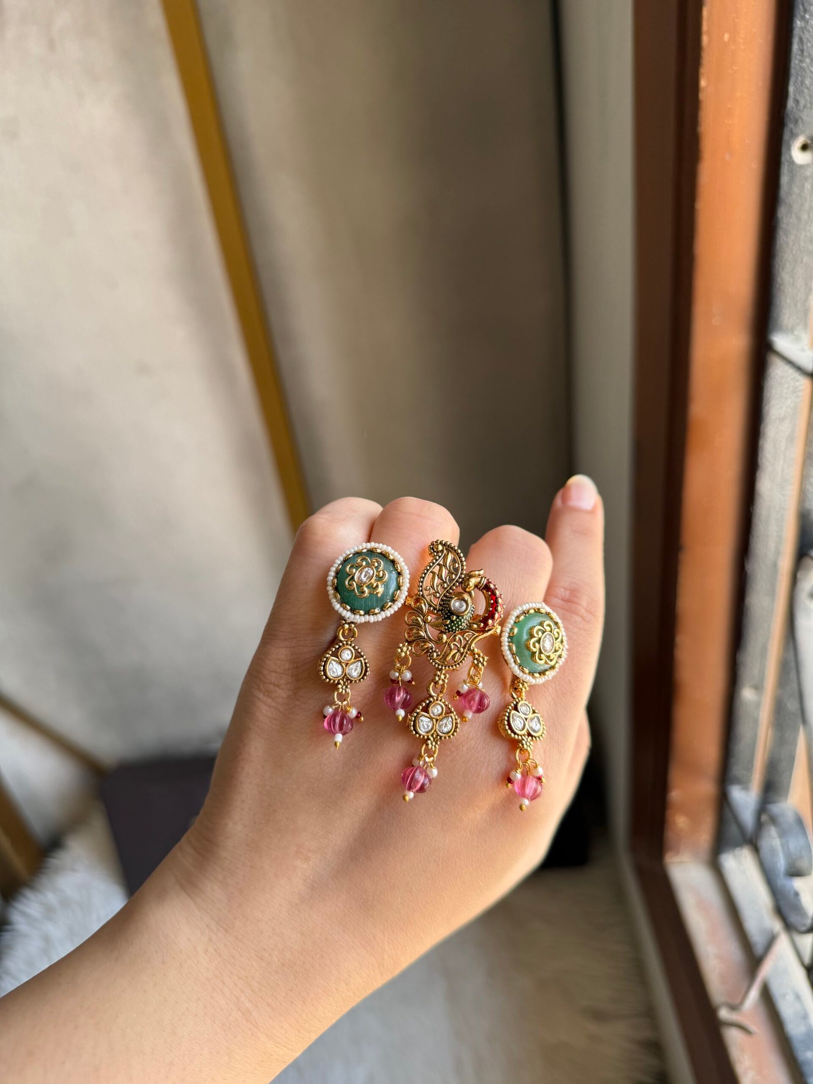 Designer premium quality original kundan double finger ring with meenakari work ..!