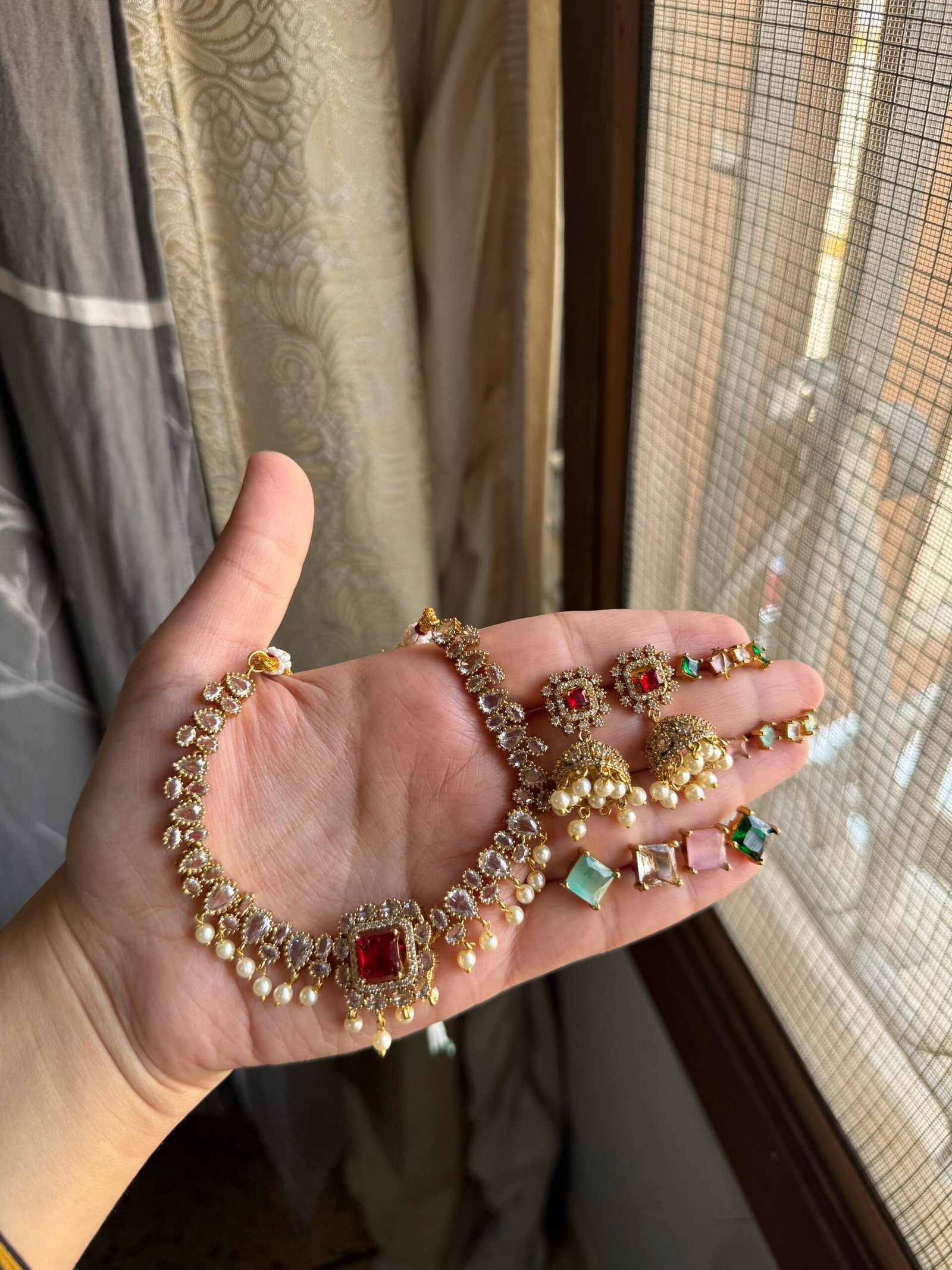 Designer premium quality south indian changable set with jhumkis ✨