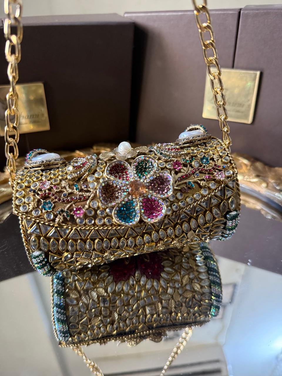 Designer hand made kundan mini clutch with turkish work