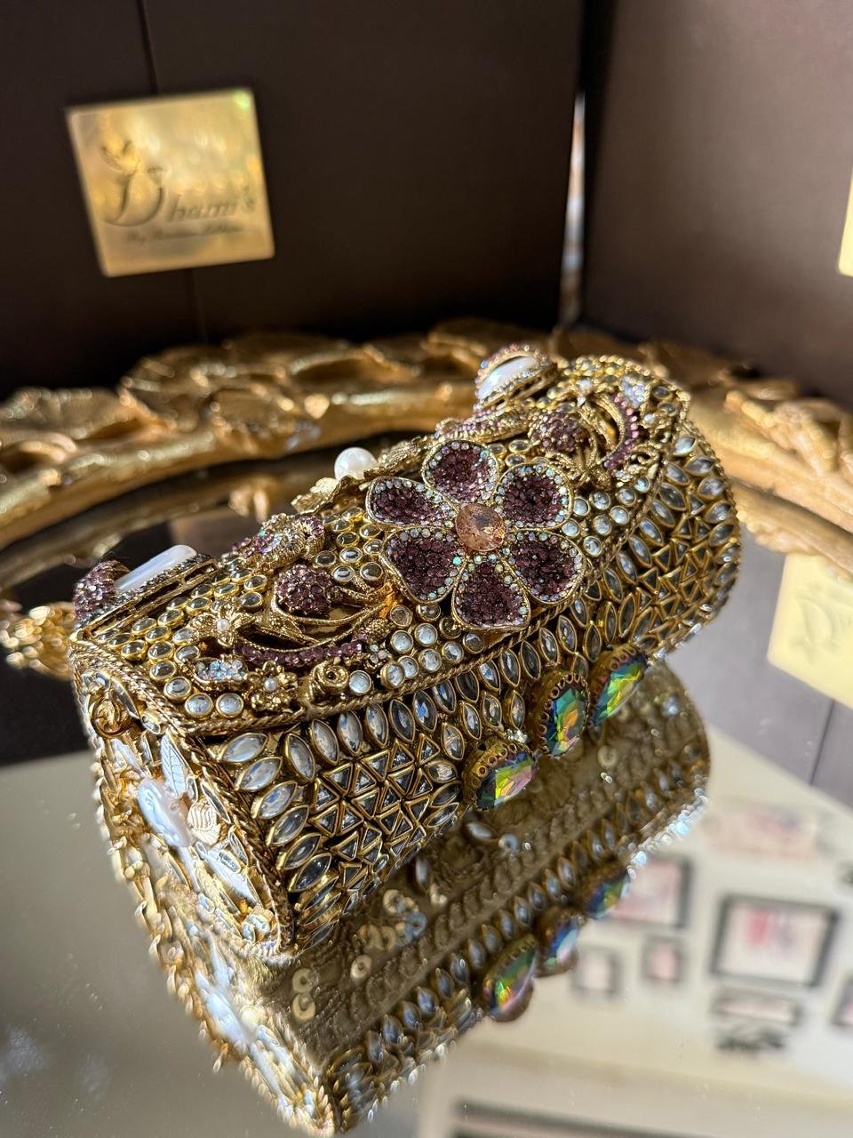 Designer hamd made kundan mini clutch with turkish work